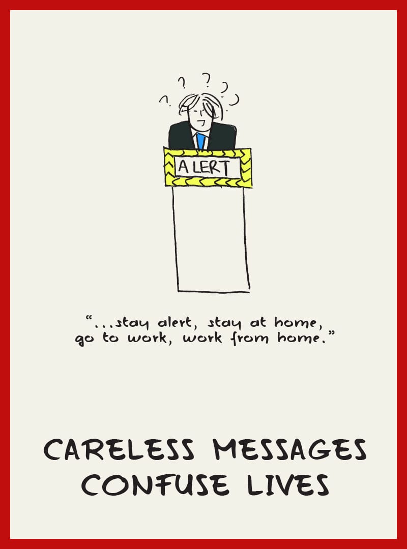 One minute it is “stay at home”, then suddenly “go to work”, then “work from home”, then “stay alert”. No wonder people get confused. The mixed messages aren't just unclear, they shifted so often that nobody knows which version was meant to apply.
