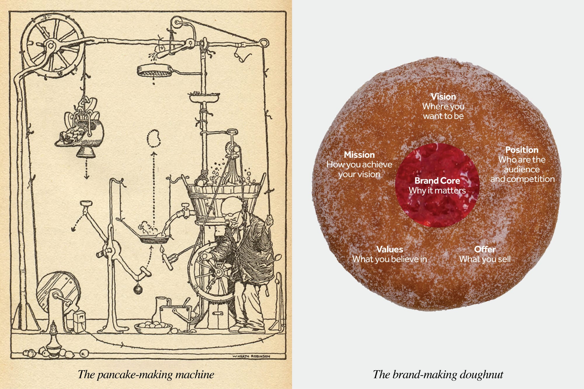 Heath Robinson was a British cartoonist, who created elaborate machines that could do the simplest of tasks. This diagram is one of his contraptions for making a pancake.