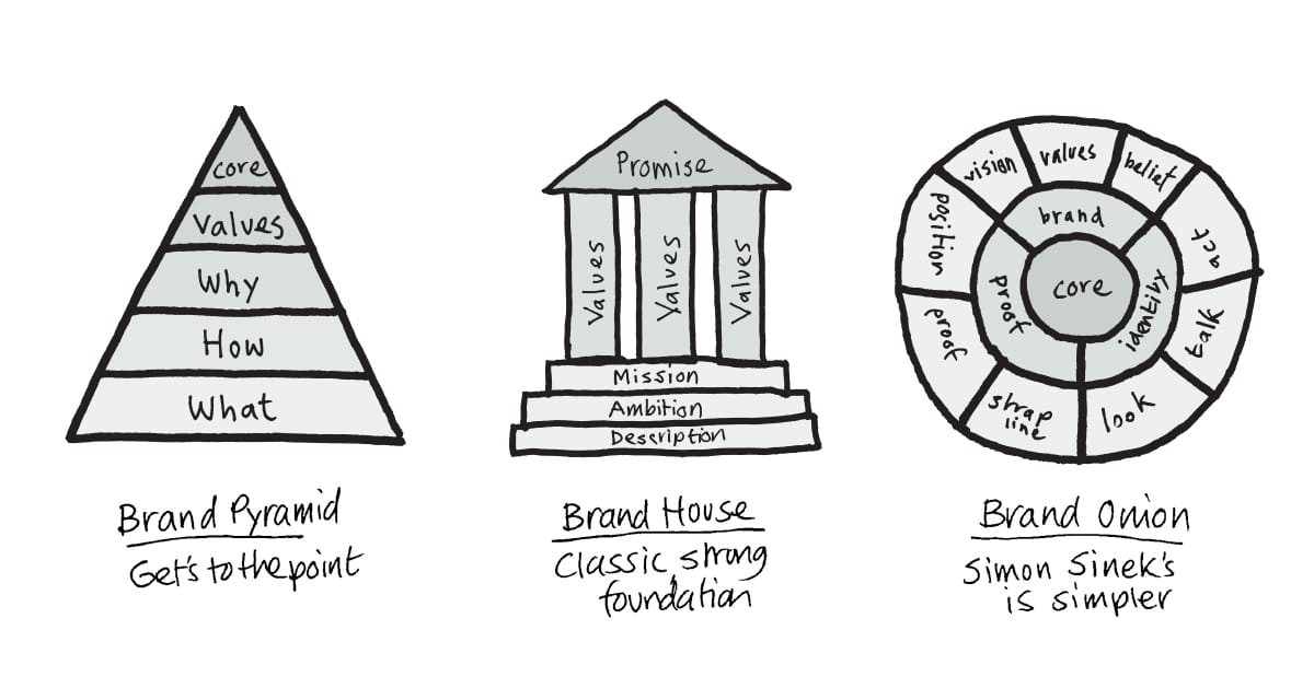 The best way to define a brand is to create a brand model. But which is the right one? You could choose a “Brand Pyramid” with “What your brand stands for” at the base, building to a “Brand Core” at its peak. Or maybe you’d prefer a “Brand House” usually visualised as a classical building with pillars of “Values” displaying a “Brand Promise” on its roof. Or a “Brand Onion” layers of values and identity elements, with a central “Brand Core”.